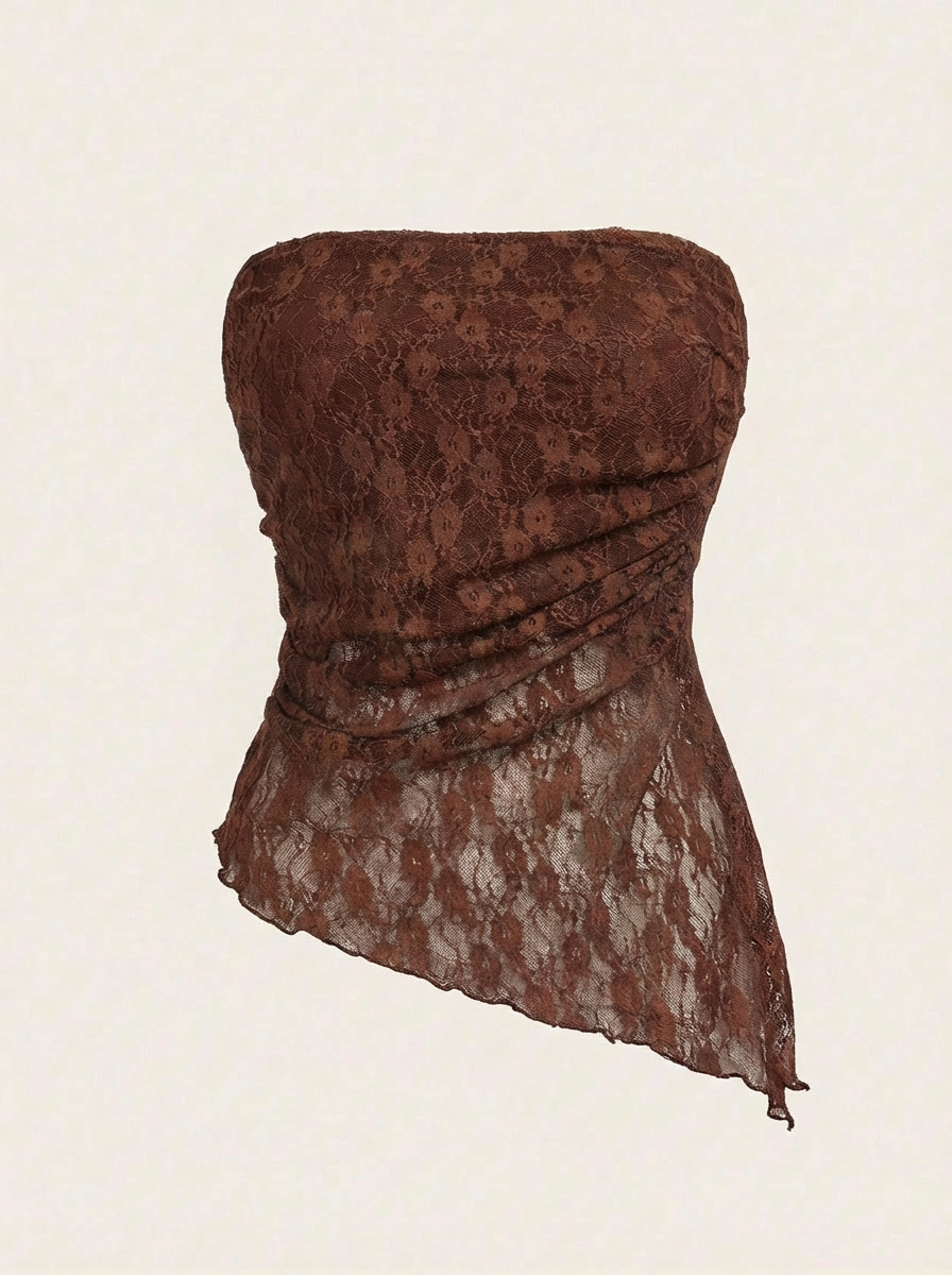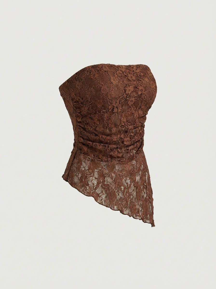 Top Strapless asimétrico con forro delantero y trasero. Detalle de pliegues en costado.