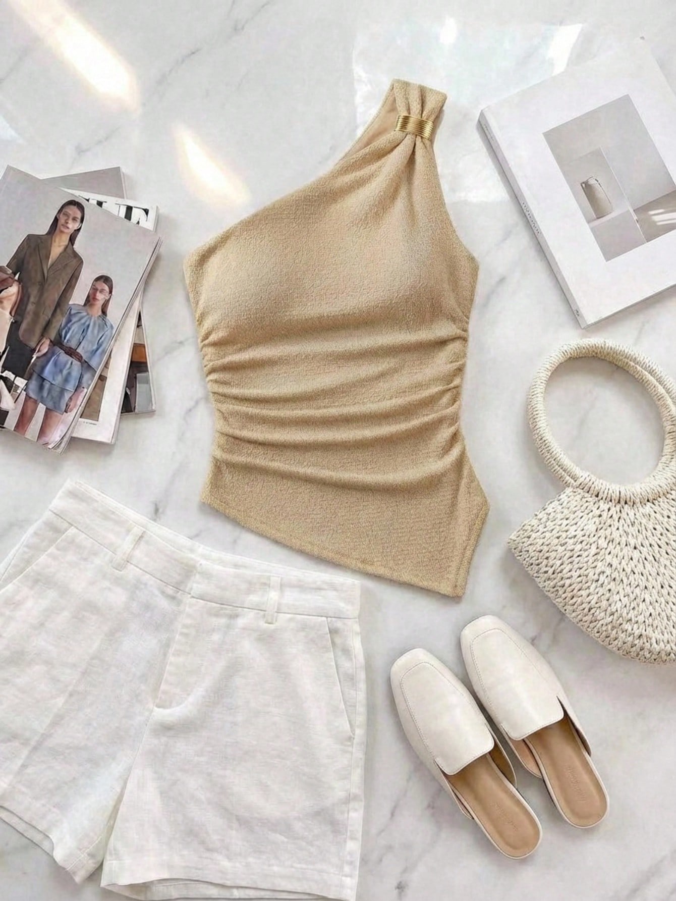 Top asimétrico con detalle metálico al frente.