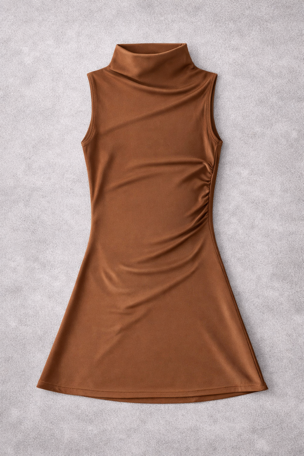 Vestido corte A, con detalle de pliegues en lateral, cuello semi alto. Ideal para acompañarte en la escuela, oficina, eventos, etc.